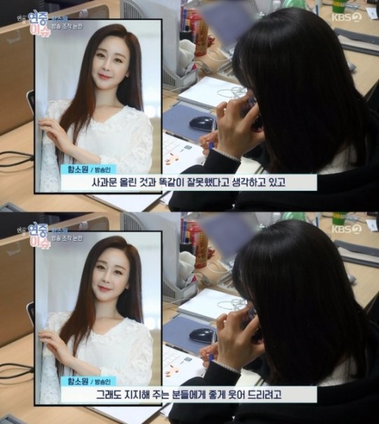 함소원은 '연중 라이브'와 전화연결을 통해 현재 심경을 전했다. 그는 "많이 힘들다. 사과문 올린 것과 똑같이 잘못했다고 생각한다. 잘못했다고 인정하고 반성하고 노력하려고 한다"며 "지지해 주는 분들에게 좋게 웃어 주려고 노력한다. 또한 한 가정의 엄마로서도 노력하고 있다"고 말했다.