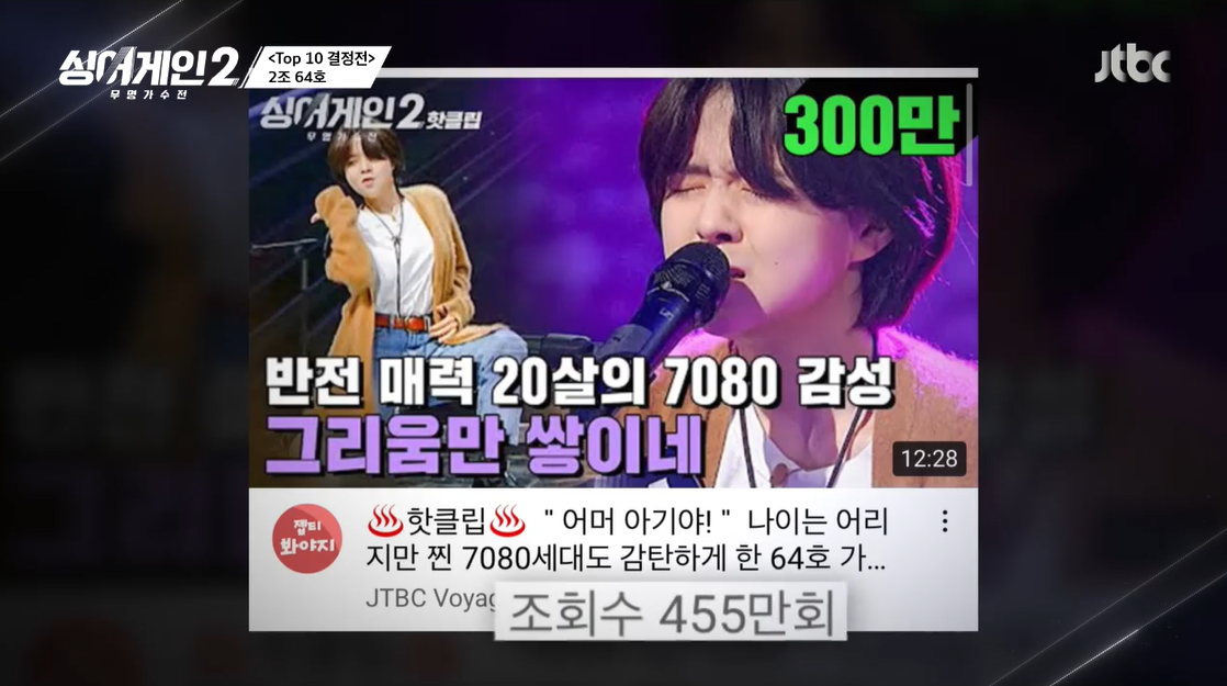 앞서 첫 무대에서 앳된 얼굴로 7080 감성 무대를 꾸민 64호는 춤도 옛날 춤을 좋아하냐고 묻자 "방탄소년단 팬이다"라며 '아이 니드 유(I need you)' 댄스 커버를 멋지게 해내 화제를 모은 바 있다.