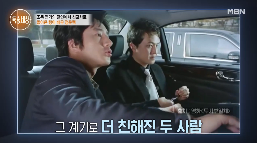 영화 '두사부일체'로 인연을 맺은 배우 정준호의 '특종' 제보로 공개된 정운택은 인상부터 달라져 눈길을 끌었다. 터틀넥에 재킷, 안경을 썼고 표정도 한결 편안해져 있었다.