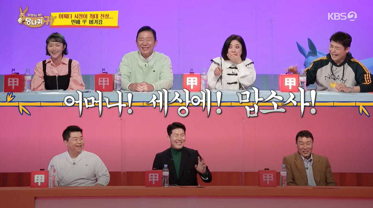 '갑'버튼을 누른 MC 들이 "아니 버팔로윙은 1만원이 넘는데 그걸 왜"라고 묻자 "사장님 잘 생겼다 이렇게 하셔서"라며 웃었다. 이에 김숙은 "아니 그건 이대형 선수보고 한 말인데 왜 본인이 착각을 하냐"며 지적했다.