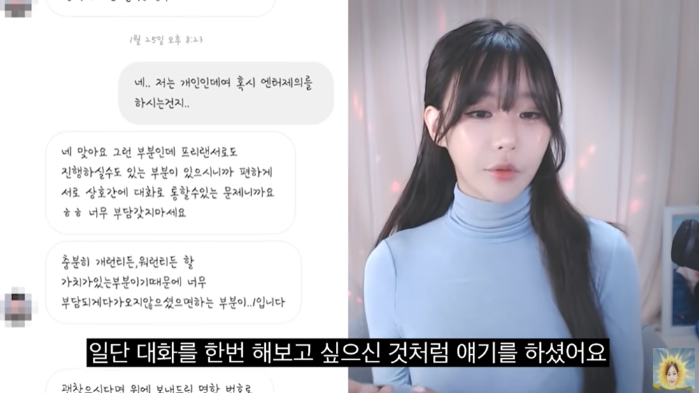하루는 "난 엔터사업에 관심이 없어서 답장을 안하려고 했는데 연락이 와서 1시간 35분 정도 통화를 했다. 처음에는 사업을 같이 하자더니 넷플릭스에 내 영상을 올리고 싶다. 하트시그널에 같이 출연하고 싶다. 아프리카 인수하면 되냐. 막 이러더라"라고 말했다.