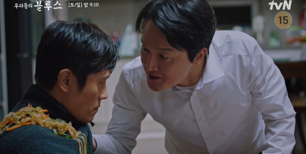 옥동이 바리바리 제사음식을 싸들고 종우(최병모 분)의 집으로 간 가운데, 동석은 어린 시절 자신을 구타하던 종우와 마주치며 종우의 집까지 가게 된다. 동석은 "그 많던 너네 아버지 재산 다 말아먹고 이러고 사냐. 홧병 나 돌아가실만 하네"라고 비아냥거리다 잡채그릇을 뒤집어 썼다.