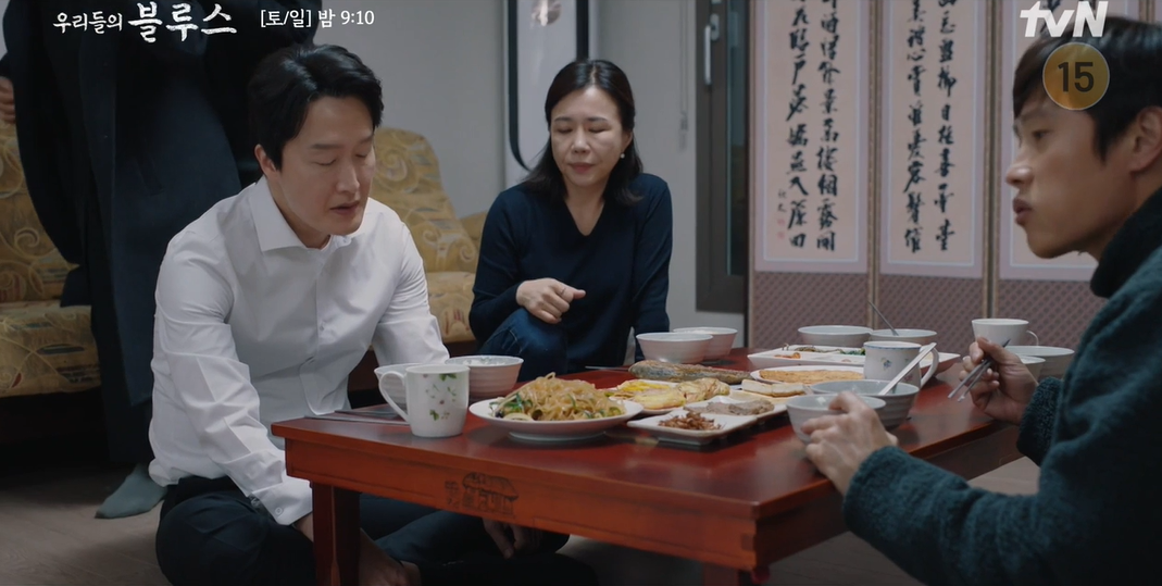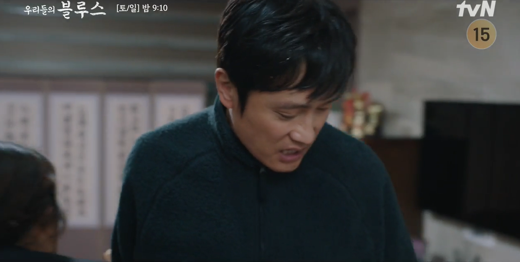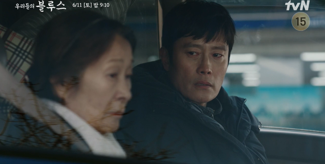 11일 방송된 tvN '우리들의 블루스'에서 동석(이병헌 분)과 옥동(김혜자 분)의 불편한 목포행이 그려졌다.