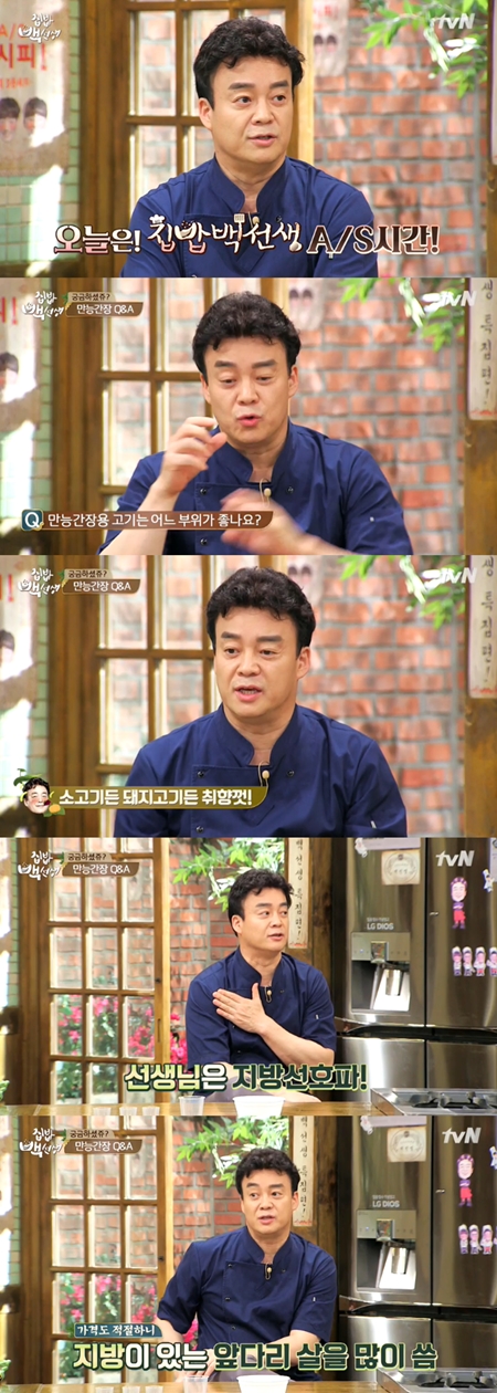 이날 방송에서 백종원은 "만능간장용 고기는 어느 부위가 좋나요"라는 질문을 받았다.