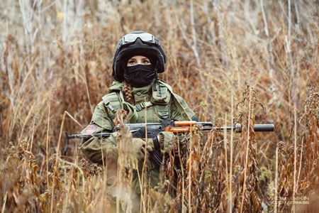 공개된 사진 속에는 러시아의 한 미녀가 군복을 입고 소총 등을 들고 포즈를 취하고 있는 모습이 담겼다. 이 여성은 군복 뿐만 아니라 총, 헬멧 등 다양한 소품들을 활용해 다양한 포즈를 취하고 있다.