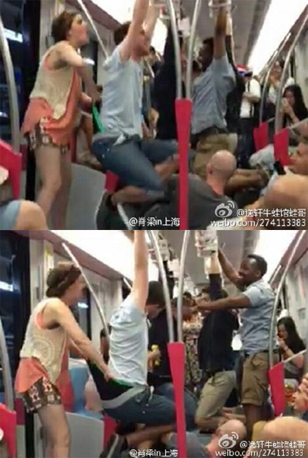 최근 중국 웨이보에는 지하철 객실 안에서 외국인들이 손잡이를 두 손으로 붙잡고 대롱대롱 매달리며 장난을 치고 있는 모습이 담긴 사진이 게재됐다.