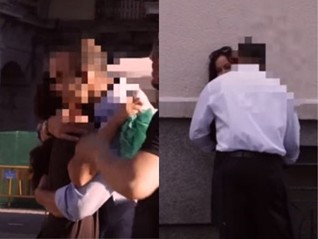 여성을 안거나 어깨에 팔을 두르는 남자도 있었다. 이들은 여성이 "핸드폰 배터리가 나갔다"고 하자 호텔에 핸드폰 충전기가 있다며 호텔로 데려가려고도 했다.
