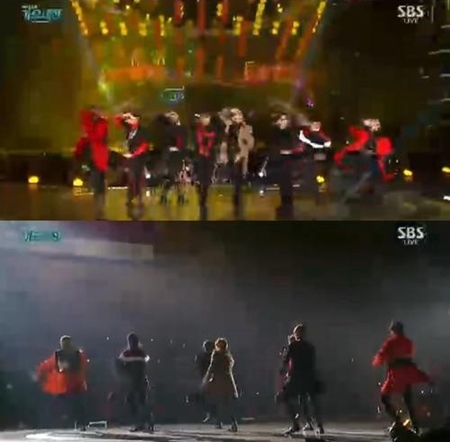 국내 양대 엔터테인먼트사인 YG와 SM간의 남자그룹 맞대결도 눈길을 끌었다. 먼저 아이콘은 '덤 앤 더머'와 '왜 또' 무대를 최초로 공개했다. '덤 앤 더머'에서는 악동 퍼포먼스로 무대를 장악했고, 이어' 왜 또'에서는 노랫말을 표현하는 감정 연기가 돋보였다.