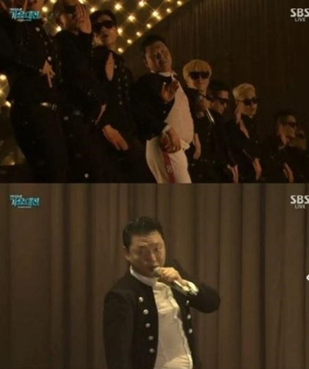생방송 무대에 오르지 못한 싸이는 지난 24일부터 3일 동안 진행된 자신의 단독 콘서트 '올나잇 스탠드 2015-공연의 갓싸이'에서 촬영된 영상으로 시청자들에게 인사를 전했다. 싸이는 최근에 내놓은 신곡 '대디(DADDY)'와 '나팔바지'의 무대를 연이어 공개, 흥겨운 무대로 보는 이들을 열광케 했다. 마지막은 K-POP '강남스타일'으로 장식했다. 싸이는 강남스타일로 SBS 가요대전 무대의 피날레를 멋지게 마무리했다.