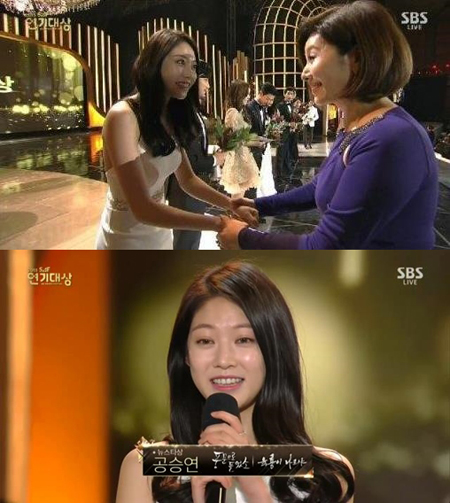 이 모습을 본 MC 이휘재는 침착하게 진행을 하며 공승연에게 수상소감을 유도했다. 이에 공승연은 “오늘 시상식에 처음 왔다. 상까지 주셔서 감사하고, 2016년에도 연기 열심히 잘 하겠다”라는 수상소감을 남겼다. 이후 공승연은 축하무대를 위해 무대를 떠났지만, 뒤늦게 트로피를 전달받았다.