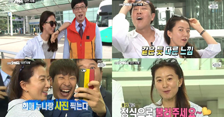 해외 일정을 위해 인천공항을 방문한 김희애는 자신을 만나러 온 유재석을 보고 "유느님이다"라고 당황스러워하면서도 예능감을 발휘했다. 무엇보다 '무한도전'을 포함한 여러 방송에서 김희애 성대모사를 숱하게 보여준 김영철과 김희애의 공개적인 첫 대면이 많은 화제를 모았다. 김희애는 김영철의 짓궂은 패러디 개그에도 면박과 칭찬을 오가며 능숙하게 받아줘 웃음을 자아냈다.