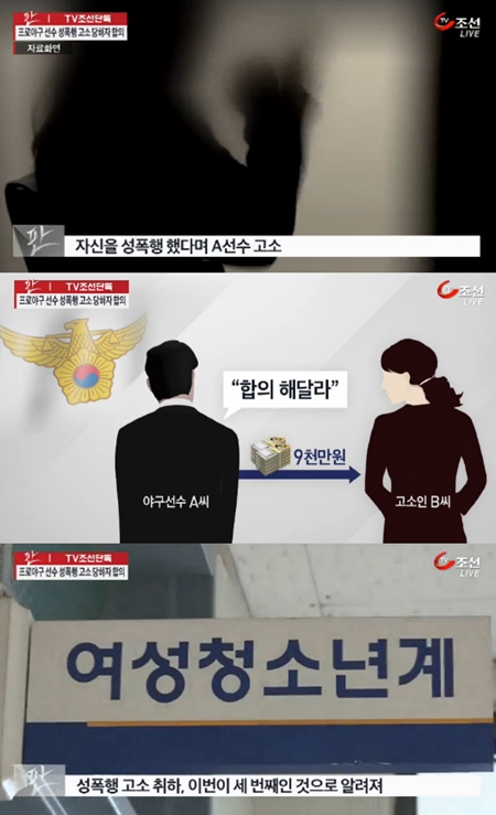 15일 한 매체는 검찰 관계자의 말을 인용해 '수도권 구단 소속인 A씨가 지난해 11월 나이트클럽에서 한 여성을 만난 뒤 지인의 집에서 성관계를 맺었다. 이후 성관계를 맺은 여성은 A를 성폭행범으로 고소했으나, A씨로부터 합의금 9000만 원을 받고 소를 취하했다'고 보도했다.