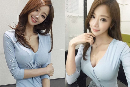 윤사랑은 글래머 몸매가 한껏 돋보이는 하늘색 원피스를 입고 카메라를 향해 활짝 웃고 있다. 특히 윤사랑은 볼륨감 넘치는 몸매에 뛰어난 미모로 남심을 사로잡았다.