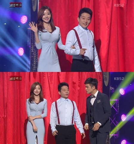앞서 윤사랑은 지난 13일 오후 KBS2 예능프로그램 '개그콘서트'의 코너 '웰컴 백 쇼'에 출연해 개그맨 김준호의 도우미로 등장해 눈길을 끌었다.