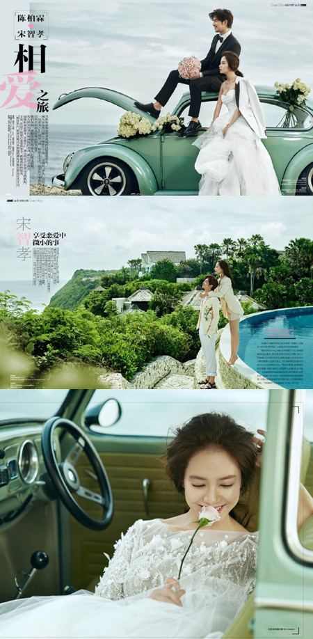 [스포츠서울] 중국판 '우리 결혼했어요'에서 호흡을 맞추고 있는 배우 송지효와 대만 스타 진백림 커플의 화보가 공개됐다.