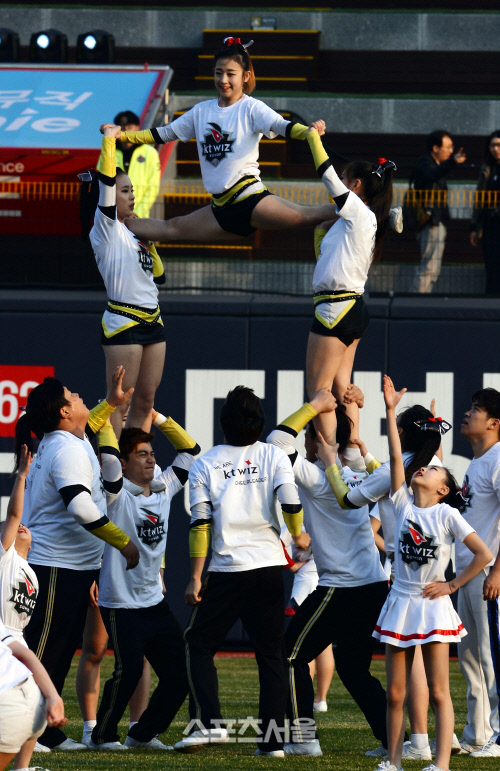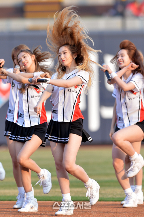 또한 신인 걸그룹 우주소녀도 KT위즈파크를 찾아 홈 개막전 축하 공연을 펼치며 팬들의 흥을 돋궜다.