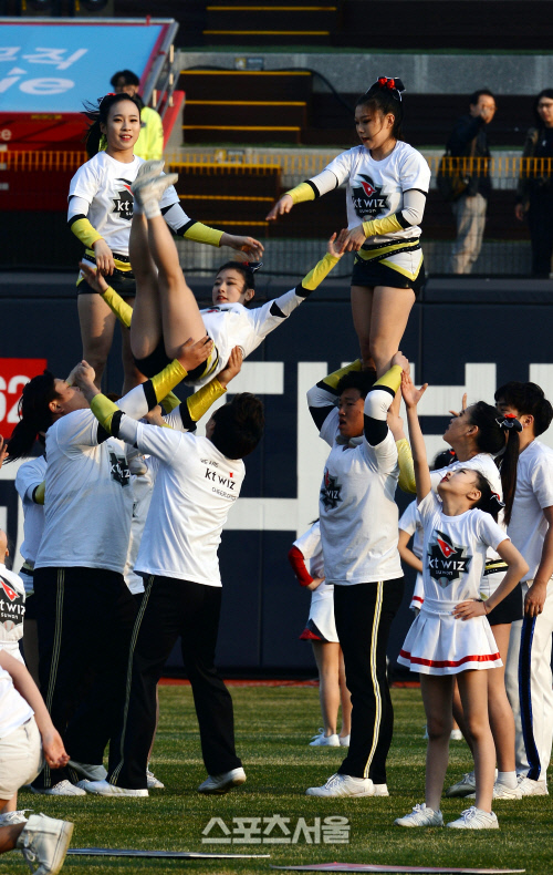 [스포츠서울] KT 위즈가 2016시즌 홈 개막전에서 다양한 퍼포먼스를 선보였다.