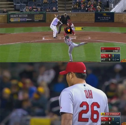 [스포츠서울] '파이널 보스' 오승환(세인트루이스 카디널스)이 피츠버그 타자들 앞에서 돌직구의 위력을 마음껏 뽐냈다.