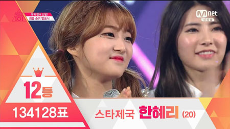 ‘프로듀스 101’에서 12위는 높은 위치인 것은 분명하나 데뷔를 하지 못한다는 점에서는 101위와 다를 바 없었다. 최종 순위 발표에서 아쉽게 12위를 차지한 한혜리는 “12위를 차지했다는 것만으로, 이 자리에 설 수 있었다는 것만으로도 만족한다”며 씩씩한 모습을 보였다. 12위에 그친 한혜리는 소속사 스타제국으로 복귀해 다시 연습생 생활을 시작했고, 지난 6일 진행된 V앱 생방송을 통해 근황을 전했다. 팬들은 100만여개의 하트를 보내며 한혜리를 응원했다.