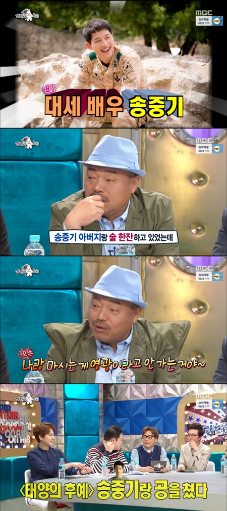 이어 김흥국은 "송중기 아버지와 친하다. 과거에 송중기가 군대에서 휴가를 나왔을 때 아버지와 내가 술을 마시고 있었는데 와서 인사를 하더라"고 말했다.