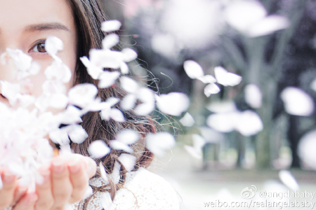 27일 안젤라 베이비는 자신의 웨이보에 "햇빛이 모든 곳을 비추고 어딜 가도 꽃을 볼 수 있는 시기"라는 글과 함께 화보 컷을 공개했다.