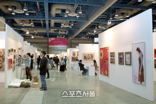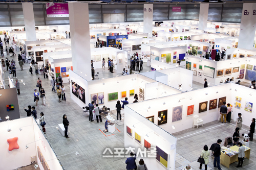 ▲서울 삼성동 코엑스에서 진행된 서울오픈아트페어 현장.(사진=왕진오기자)