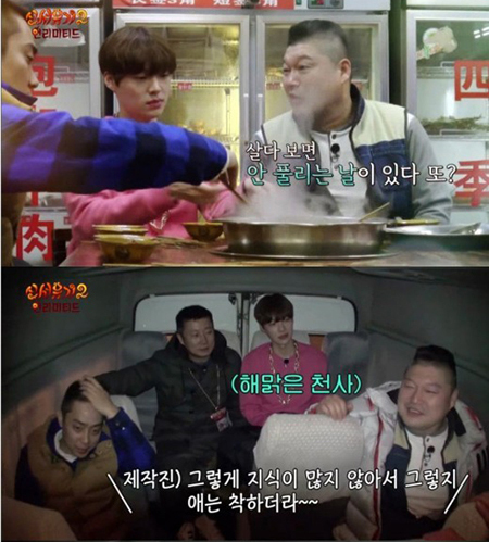 또 저녁 미션에서 강호동이 실수를 하자 안재현이 계속해서 그을 위로하고 챙겨줬다. 안재현의 이 같은 행동을 계속 지켜본 나영석 PD는 "지켜보니까 (안)재현이는 착하다. 계속 챙겨줬다"라며 "지식이 많지 않아서 그렇지 애는 착하다"라고 말해 웃음을 자아냈다.