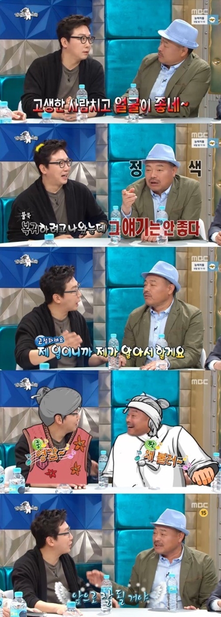 최근 탁재훈의 지상파 복귀로 관심을 모은 MBC 예능프로그램 '라디오스타'에서도 김흥국의 진가는 빛을 발했다. 당시 김흥국은 경직돼 있는 탁재훈을 보호해주기 위해 나름대로 쉴드를 쳐줬지만 오히려 웃음을 유발하는 상황으로 흘러갔다. 김흥국은 탁재훈의 지각 습관을 이야기하던 도중 규현을 향해 "그 이야기는 이 시점에서 하지 않는게 좋은 것 같다"며 정색을 하는가 하면 탁재훈과 하춘화의 '잘했군 잘했어'를 부르며 최강 케미를 선보였다.