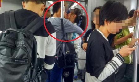 최근 웨이보에는 사람들로 붐비는 지하철에서 무려 25분 동안 키스를 하는 중국 커플의 사진이 올라왔다.