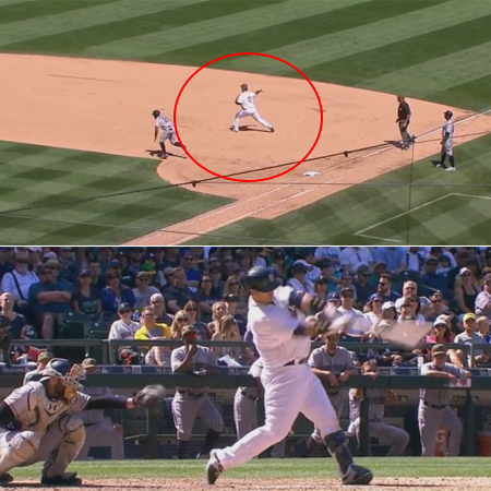이날 이대호는 환상적인 더블 플레이로 팀을 위기에서 구해냈다. 0-1로 뒤진 6회 무사 1, 2루 상황에서 샌디에고 타자 멜빈 업튼 주니어의 1루 강습 땅볼을 침착하게 잡아 2루로 송구한 이대호는 재빠르게 1루를 커버하며 더블 플레이를 완성했다.