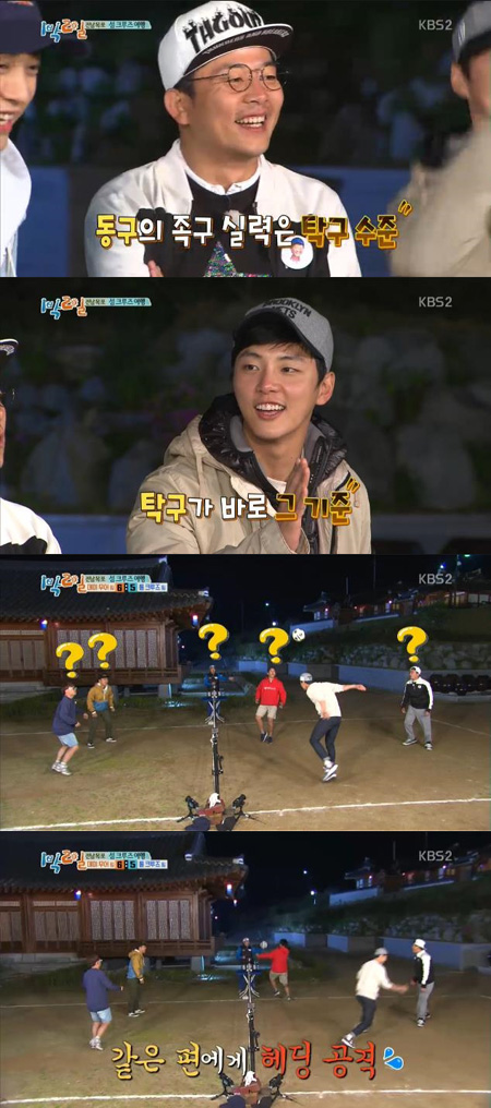 이 과정에서 ‘동구’ 윤시윤은 ‘명불허전’ 실력을 선보였다. 족구 대결에 나서기 전 윤시윤은 자신의 탁구 실력에 대해 “탁구 정도 된다. 예전엔 없었는데 이제 모든 기준이 탁구 실력이 됐다. 탁구보다 잘하고, 못하고가 됐다”고 말했다.
