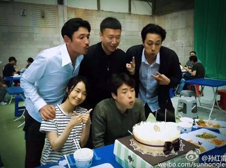 공개된 사진 속에는 '군함도'의 류승완 감독, 배우 황정민, 소지섭, 이정현 등이 모여 케이크를 앞에 두고 초에 붙은 불을 끄고 있는 모습이 담겨있다.