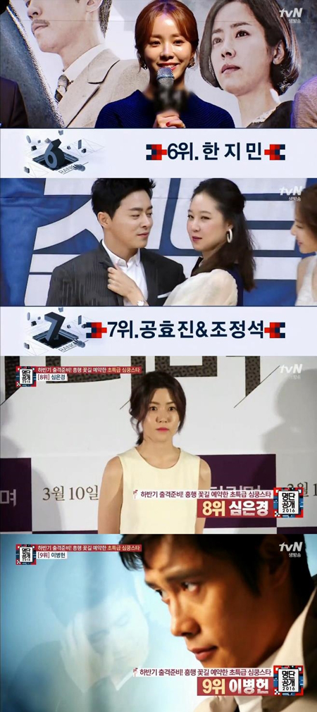 믿고 보는 '흥행퀸' 심은경은 8위에 올랐다. 심은경은 천재 해커로 영화 '조작된 도시'에 출연한다. 이 작품은 영화 '웰컴투 동막골'의 박광현 감독과 배우 지창욱이 함께 기대를 모으고 있다. 이어 9위에는 이병헌이 이름을 올렸다. 이병헌의 하반기 기대작은 내달 14일 개봉 예정인 영화 '매그니피센트7'으로 호화 캐스팅으로 전 세계적으로 주목을 받고 있다.