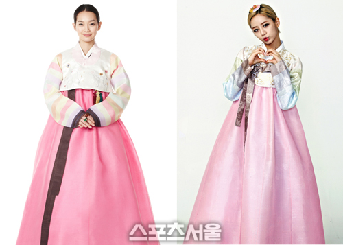 ▶ 다가오는 추석을 앞두고 한복 패션 또한 눈길을 끌고 있다. 배우 신민아와 걸그룹 걸스데이 멤버 혜리는 분홍색 치마에 색동저고리를 곱게 차려입어 단아한 모습을 선보였다.