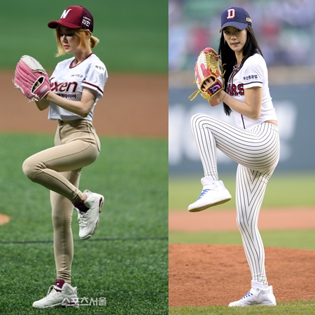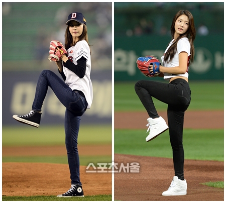 이동통신사 SK 텔레콤 광고 모델이기도 했던 설현은 지난해 SK 행복드림 구장에서 시구를 했다. 검은색 스키니에 굽 높은 운동화를 신고 시구하며 아찔한 몸매를 뽐냈다. 윤아 역시 진청 스키니에 검은색 운동화로 인상을 남겼다.