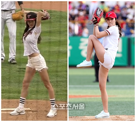 먼저 모델 최여진은 지난해 LG 트윈스 홈 구장인 잠실 마운드에 올라 힘차게 공을 뿌렸다. 이날 그는 찢어진 화이트 핫팬츠를 입고 아찔한 각선미를 뽐냈다. 레이싱 모델 이수정도 각선미를 드러내기 위해 핫팬츠를 입고 마운드에 올랐는데, 당시 모두를 깜짝 놀라게 한 강속구 시구가 더욱 주목받기도 했다.