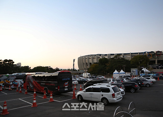 어둠이 깔린 잠실구장 중앙출입문 인근 주차장..