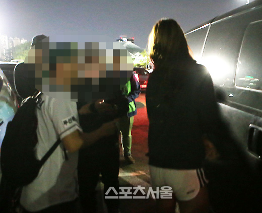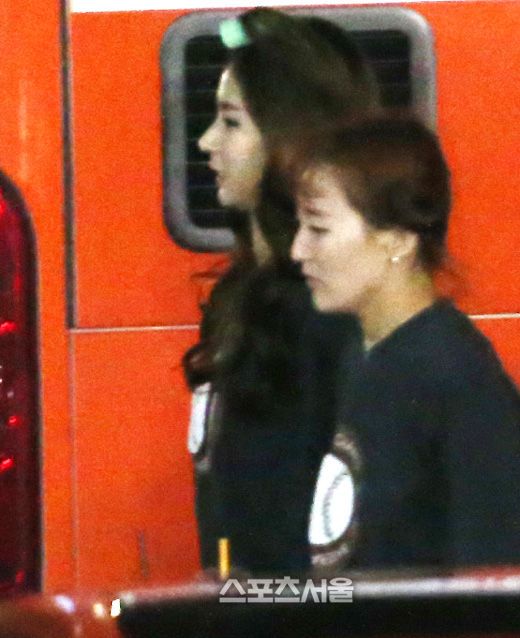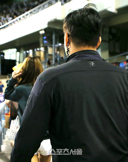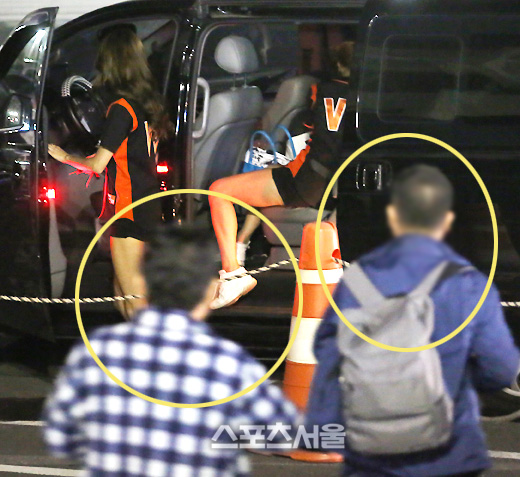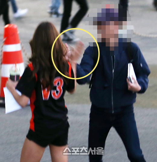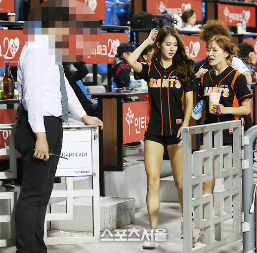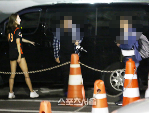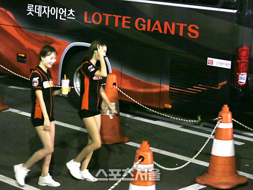 건장한 체구의 한 명 보안요원(오른쪽)이 두 치어리더의 뒤를 따르고 있었다. 이 역시 그동안 볼 수 없었던 고무적인 사실이었다. 퇴근길 치어리더들의 안전을 위한 조치였고, 며칠 전 '잠실 치어리더 사건'을 염두에 둔 안전조치였다.