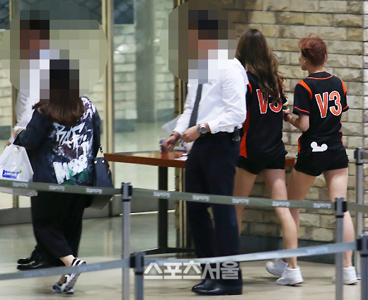 박기량(왼쪽)과 염지원이었다. 경기시작 7분전이었고, 이들은 이곳으로부터 약 80여 미터 떨어진 잠실구장 중앙출입문을 통해 야구장 안으로 입장하게 된다. 그 사이 즉, 80미터를 걸어가는 동안 또 어떤 일들이 발생했을까.
