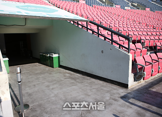 지난 1일 오후, 서울 잠실구장에서 LG와 SK의 경기가 있었다. 경기 종료 후, SK 치어리더는 3루 응원석을 빠져나와 귀가길에 올랐다. 이날 SK 치어리더는 두 명이었다. 사진은, 잠실 3루 응원단석 모습이다.