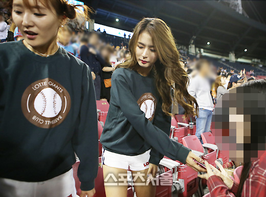 4회말 종료 후, 원정팀 롯데 두 치어리더에게 갑자기 나타난 두 남성이 그들의 팬이었기에 망정이지, 그렇지 않고 '불청객'이었다면? 사고란, 언제 어디서든 예기치 않는다는 점을 끝으로 '거듭' 강조하고 싶다. 지난 4일 오후, 두산과 롯데의 잠실이었다. 2016.10.07.