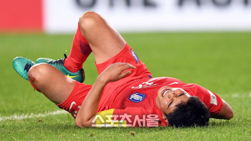 경기 후반 35분 선제골의 주인공 기성용이 골문 앞에서 볼 경합을 벌이다 카타르 선수와 충돌해 쓰러진 것.
