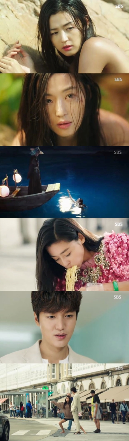 16일 방송된 SBS 수목드라마 '푸른 바다의 전설'에서는 심청(전지현 분)이 허준재(이민호 분)와 만났다.