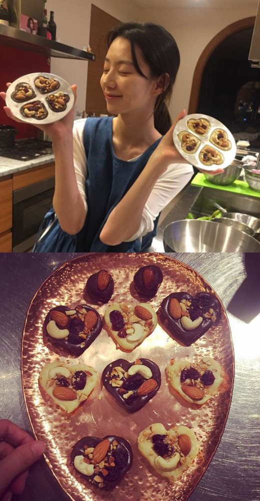 박수진은 14일 자신의 인스타그램을 통해 '밸런타인데이'라는 글과 함께 직접 만든 초콜릿 사진 게재했다. 남편 배용준을 주기 위해 만든 것으로 보인다.
