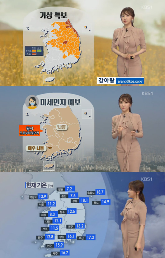 강아랑은 8일 방송된 'KBS 뉴스광장'에 출연해 일기예보를 전했다.