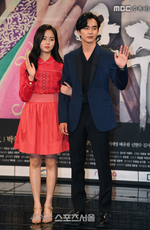 [스포츠서울] 배우 김소현과 유승호가 8일 서울 마포구 상암동 MBC 사옥에서 진행된 MBC 수목미니시리즈 '군주-가면의 주인' 제작발표회에서 무대 인사를 하고 있다.