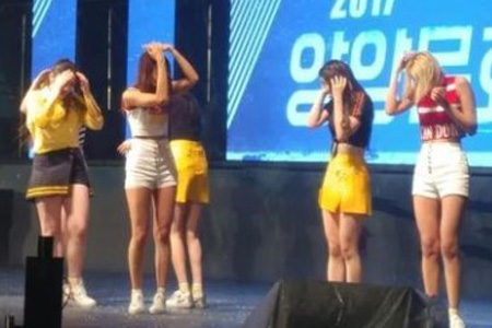 [스포츠서울] 걸그룹 프리스틴이 행사 도중 우박을 맞는 모습이 포착돼 팬들을 안타깝게 하고 있다.