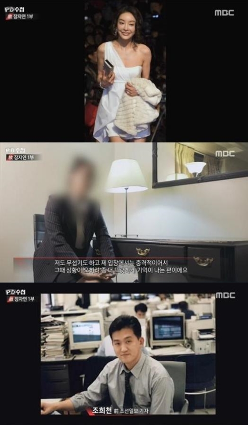 이날 'PD 수첩'은 장자연의 후배의 증언을 전했다. 후배 김 씨는 "내가 본 것이 사실이라는게 드러나며 한 명이라도 죗값을 치렀으면 좋겠다"며 "지금까지도 힘들었다. 진술했는데 뭔가 제대로 수사되지 않고 그랬으니깐"이라며 "언니(장자연은) 여배우로 살고 싶어하는 마음이 간절했다"고 말했다.