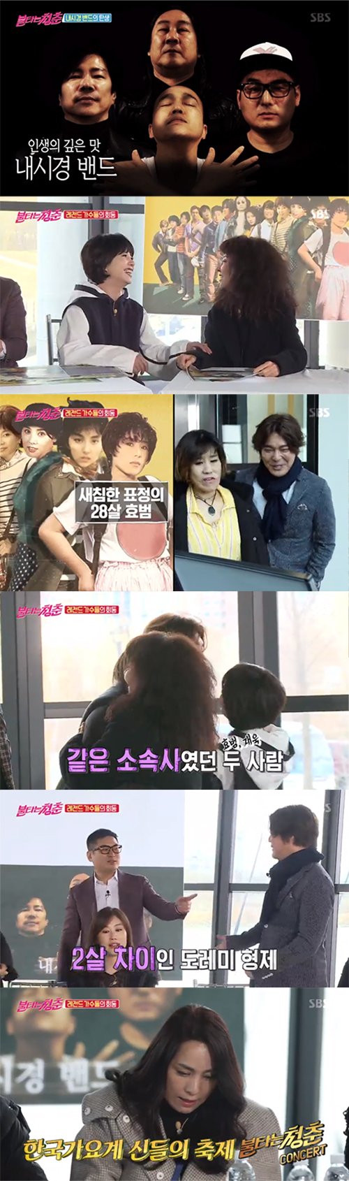 이날 양수경, 신효범, 김완선, 최재훈, 김도균, 이재영, 장호일, 임재욱 등 '불타는 청춘' 속 레전드 가수들이 총출동했다. 이들은 콘서트를 기획, 콘서트 순서 등을 정하기 위해 한자리에 모였다. 반가운 얼굴들이 속속 도착하자 서로 껴안고 기뻐하던 멤버들은 초대 손님이 있다는 말에 귀를 쫑긋했다.