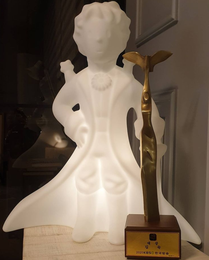 김숙은 25일 자신의 SNS에 전날인 24일 거머쥔 KBS연예대상 트로피 사진과 함께 감사인사를 올렸다. 그는 "정말 상상도 못했던 일이 오늘 제 인생에서 일어났어요. 특별한 능력도 없는 제게 기회를 주신 분들과 아무 조건없이 응원해주신 여러분이 있기에 가능한 일이었습니다"라며 인사했다.